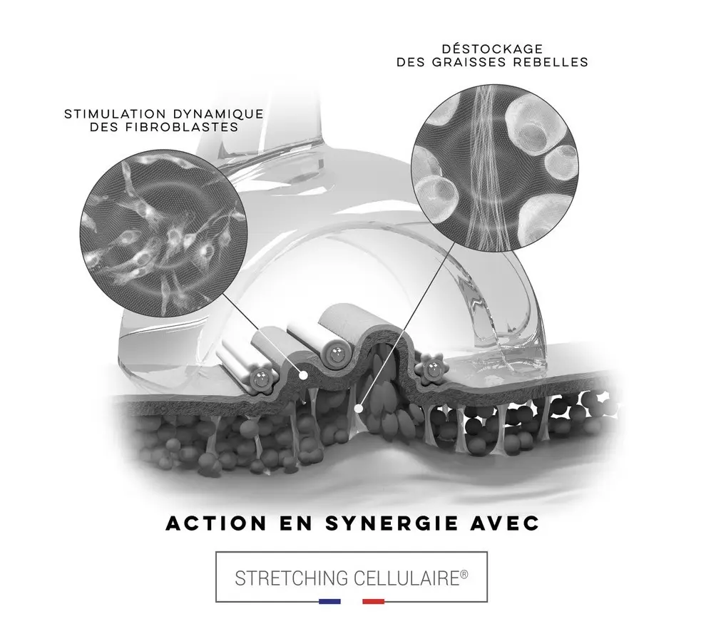 Véritable innovation technologique issue de la recherche scientifique, la nouvelle méthode de Stretching Cellulaire® est la seule technique au monde permettant de travailler un double pli tissulaire pour créer simultanément une stimulation focalisée sur les cellules graisseuses (adipocytes), les cellules de la jeunesse (fibroblastes) et les fibres de structure (élastine et collagène). Utilisée à l’origine par les kinésithérapeutes pour résorber les œdèmes post-opératoires, la méthode de Stretching Cellulaire® favorise la stimulation mécanique des cellules et est également plébiscitée à des fins esthétiques.